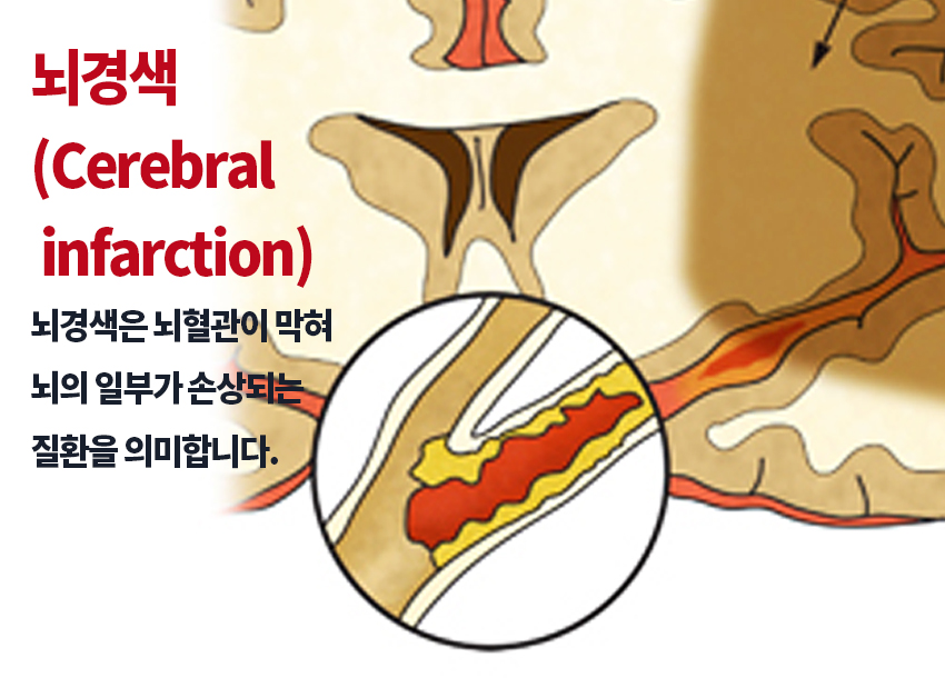 뇌혈관이 막혀 뇌의 일부가 파괴되는 질환이다. 심장병이나 동맥 경화로 인해 발생할 수 있으며 이는 60세 이상의 사람들에게 더 흔합니다. 고혈압, 고지혈증, 당뇨병이 있는 사람들은 동반 증상을 경험할 수 있지만 날씨가 추울 때 노인들에게 더 흔합니다. 뇌의 특정 부위에 흔히 발생하며 한쪽 팔과 한쪽 다리의 마비가 뇌경색의 대표적인 증상이다.