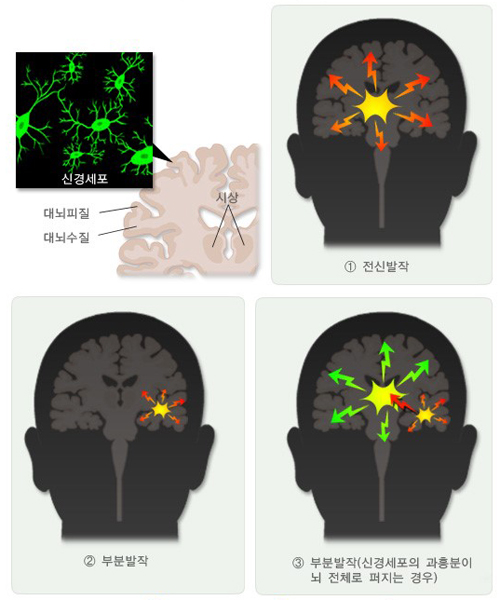 뇌전증 발작은 뇌세포에서 비정상적이고 조절 불가능한 전기적 충격을 내보내어 운동, 감각, 자율신경기능, 정신적 기능의 변화가 초래되는 것을 의미해요. 뇌 세포와 관계되어 있으므로 다른 말로 뇌전증이라고 불리기도 하더라고요.