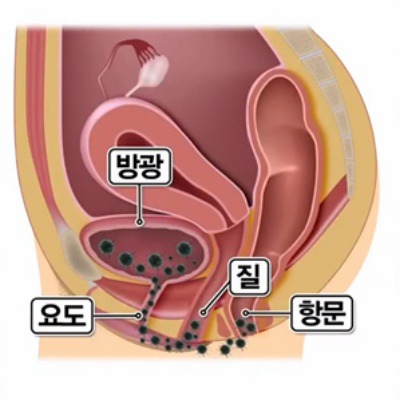 생식기를 통해 들어오는 박테리아가 주요 원인입니다. 대장균(Escherichia coli), 포도상구균(staphylococcus), 장내구균(enterococcus), 외피간균(enveloped bacilli), 변형세균(enveloped bacilli) 등은 요도를 뚫고 방광으로 올라가는 세균의 일종으로 급성 방광염의 80% 이상이 대장균에 의해 발생합니다.