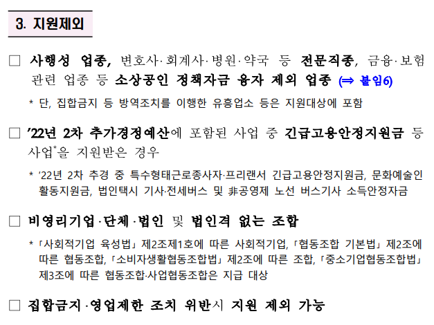 지원 제외 업종