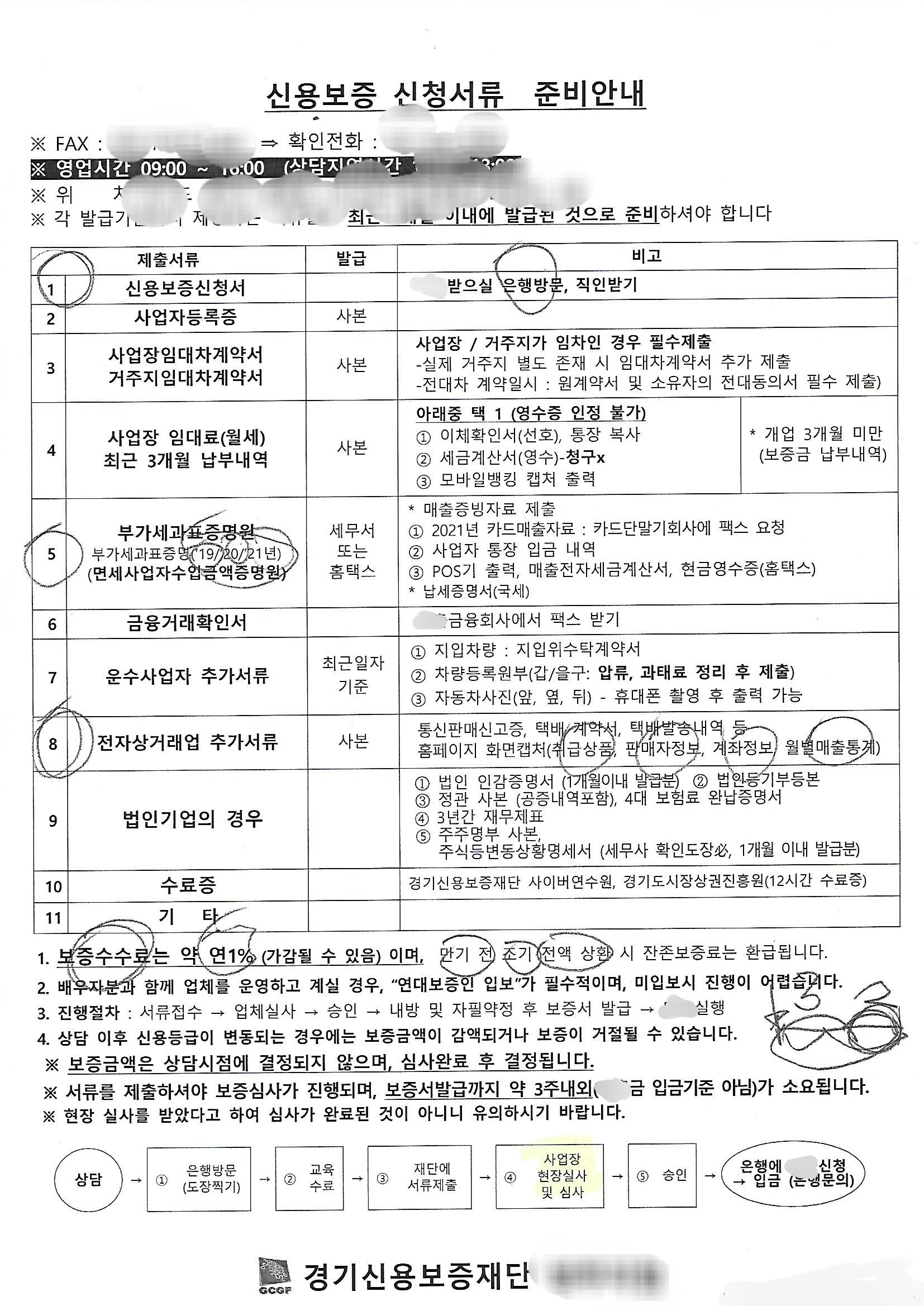 제 사업장은 경기도입니다. 그래서 경기신용보증재단에 방문했습니다. 떨리는 마음으로 미리 약속을 잡고 방문을 했습니다. 약속을 해야 한다고 합니다. 사전에 확인해 보길 바랍니다. 50대 후분으로 보이는 남자분이 반갑게 맞아주었고 안내 내용을 많이 말씀해 주셨는데 잘 기억이 나지 않습니다. 제가 기억나는 건 손에 쥐어주신 준비해야 할 서류였습니다. 내용은 이렇습니다.