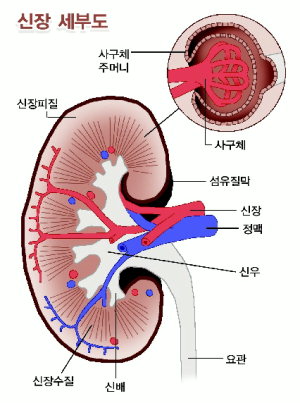 정상인의 경우 신장은 하루에 최대 180L의 혈액을 걸러내지만 대부분은 재흡수되며 실제 배설되는 소변량은 1~2L에 불과합니다. 몸이 필요로 하는 물과 영양분이 재흡수되어 배설이 더 필요한 물질이 분비되어 결국 소변이 생성되기 때문입다.