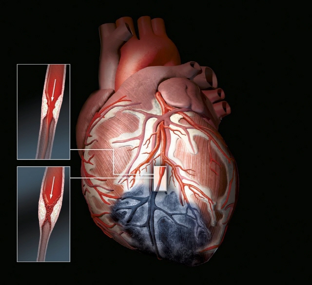 그러나 당뇨병, 고지혈증, 고혈압, 흡연 및 대사 증후군으로 알려진 기타 손상으로 인해 혈관벽에 콜레스테롤 침착물 또는 혈전이 형성됩니다. 심근경색증은 심근경색증의 한 상태로, 완전히 막히지 않으면 혈액은 통과할 수 있지만 잘 흐르지 않아 협심증을 유발합니다. 비만, 흡연, 당뇨병, 음주, 고령, 가족력 및 고혈압은 심근경색증의 주요 위험인자입니다.