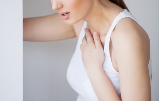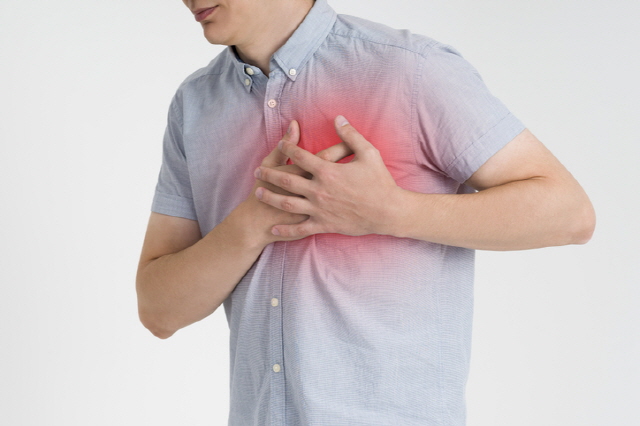 갑자기 오른쪽 가슴이나 상복부가 답답하거나 무거워지며 숨가쁨이 발생합니다. 숨가쁨과 가슴 통증이 느껴지면 즉시 의사의 진찰을 받아야 합니다. 심근경색 초기증상일 수 있습니다.
