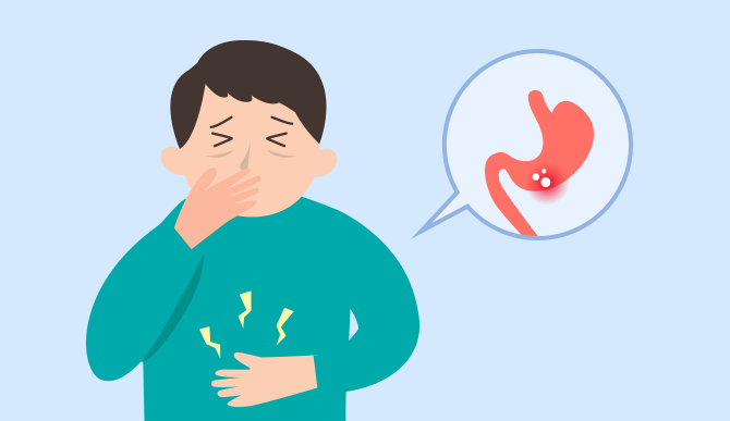 위액과 위내용물이 인두로 역류해 시큼하고 쓴맛이 입 안에서 느껴진다. 이 때문에 위산역류 증세가 많은 것으로 알려져 있는데 이는 소화하지 않고 과식해 바로 누웠을 때의 증상이다. 또 음식물 섭취시에 꼭꼭 씹어먹지 않고 급하게 먹었을 때도 문제가 된다. 성격이 급한 사람에게서 쉽게 나오는 행동이다. 식사 등을 하고 일정시간 앉아서 위가 소화라 수 있는 시간을 주어야 한다.