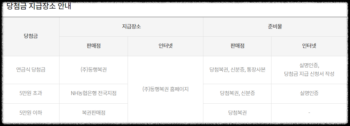 연금복권 당첨금 지급 방법